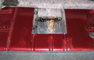 I prefer to use the access hole method of installing a fuel pump. This involves cutting out a hole in the car's flat upper trunk area. It literally makes swapping fuel pumps a breeze and if you ever have to delve into it again you will be happy you aren't dropping the tank time after time. Cutting the hole takes around 5 minutes if you use a dremel with an HD cutoff wheel. You must be very careful and not go too far below the surface so you don't cut fuel lines and wires. Before you start making cuts bleed the pressure from the fuel system at the shrader valve up front on the fuel rail and disconnect the battery. Use the two pictures below to see where you have to make your cuts. It measures from the bottom to the top of the cut about 7 inches. You can click on the pictures in this write up for higher resolution versions.